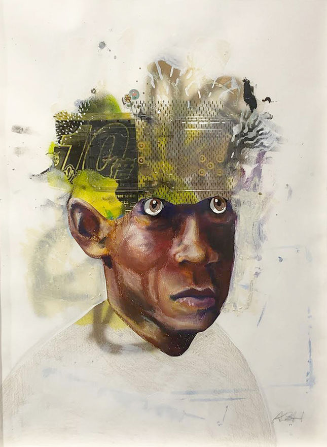 Lionel Milton, "Social Distance Social Justice," 2020. Unframed, mixed media on plywood. Photo by Mariana Sheppard